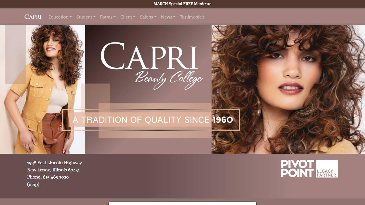 The school offers certificate programs in Cosmetology/Cosmetologist, General; Barbering/Barber; and Cosmetology, Barber/Styling, and Nail Instructor. This range of programs covers foundational beauty arts, barbering, and instructor preparation for those interested in teaching at cosmetology schools.